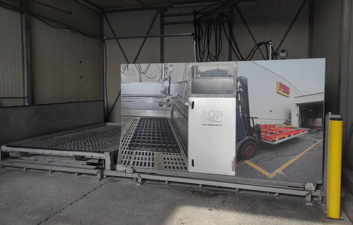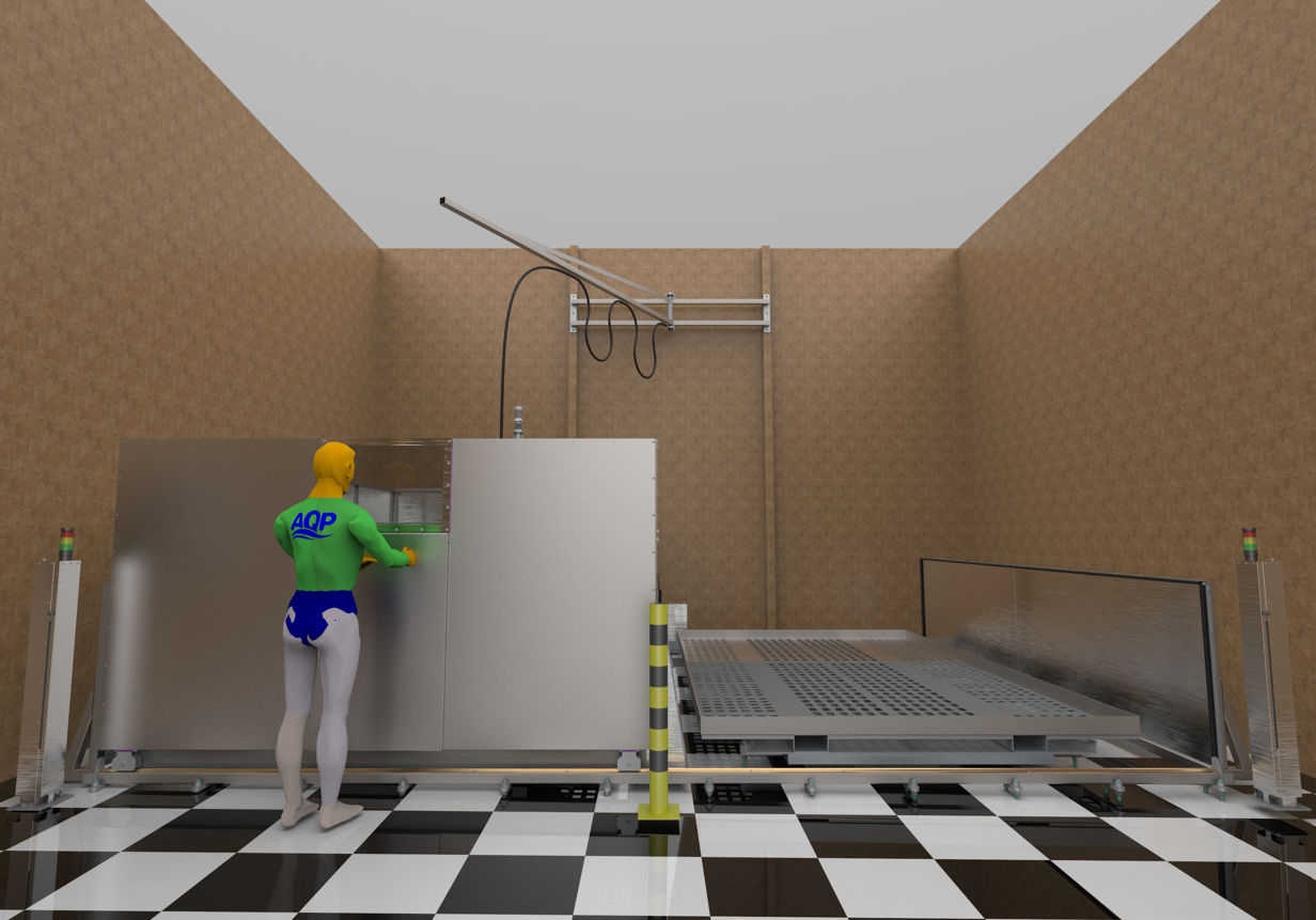 Špeciálne navrhnuté kapotované vysokotlakové automatizované zariadenie AQVA určené na dlhodobú prevádzku. Zariadenie je skonštruované podľa rozmerov už existujúcich priestorov určených na vysokotlakové tryskanie (uzavreté vetrané miestnosti).