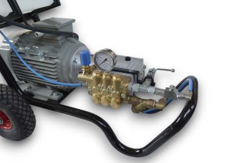 Високонапірний агрегат AQTA 2,2-250/4 є спеціальним машинним обладнанням, яке служить джерелом тиску для випробувань під тиском. Це агрегат високонапірного плунжерного насоса Speck Triplex Pumpen з електродвигуном, високонапірного регулятора тиску, фільтра та високонапірного каліброваного манометра на виході, відповідних клапанів, резервуара об'ємом 20л та пускового пристрою, все розміщено на рухомій спільній рамі. Випробування під тиском до 250 бар було розроблено на замовлення з вимогою мобільності та проведення випробувань під тиском у різних місцях промислового комплексу, навіть у місцях без джерела води, яка забезпечується з двадцятилітрового резервуара.