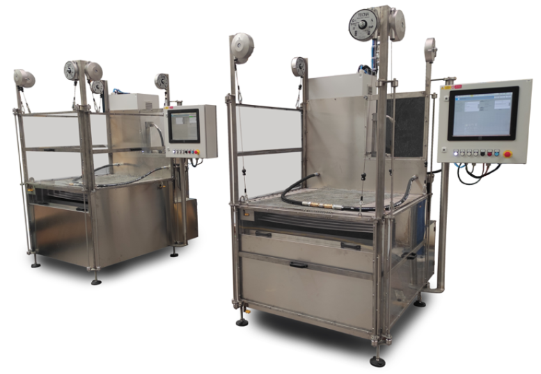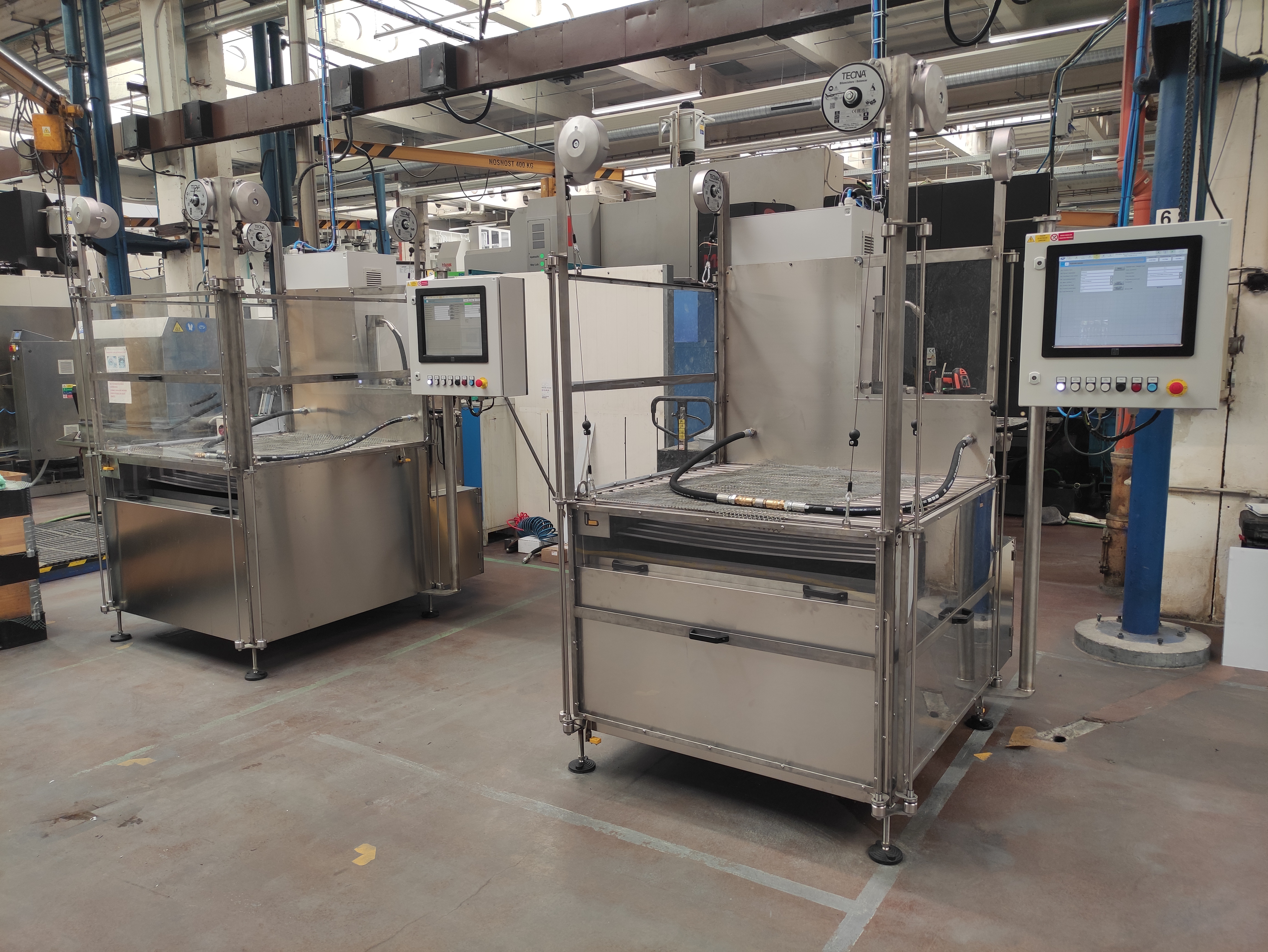 Custom built pressure testing stand for truck turbochargers in the automotive industry. Our device enables the end users to test and flush tested turbocharges during one mounting operation. Operating range is from 0-50 bar and because of that we use multistage vertical pump KSB Movitec with precise control and frequency inverter. And for higher pressures is used an intensifier controlled by pneumatic proportional valve. Thanks to this solution this product can be used for testing wide range of pressures inside one unit, decreasing the need for space in your facility.