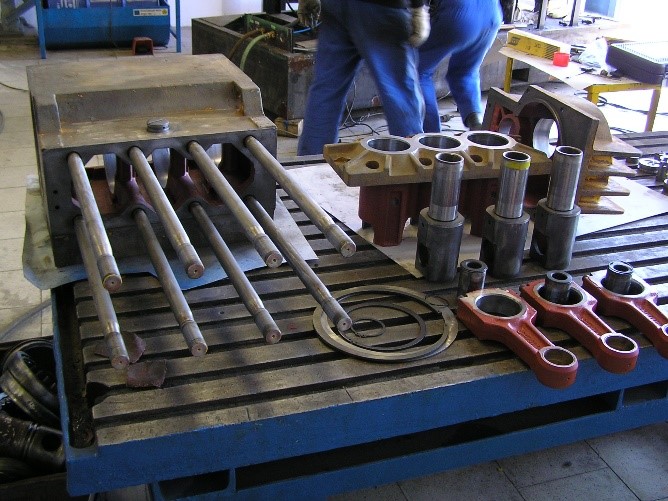 Generální a průběžné opravy a dodávky náhradních a repasovaných náhradních dílů pro všechna vysokotlaká plunžrová čerpadla různých výrobců určená k zatlačování ložiskové vody do ropných vrtů. Cílem zatlačování je zvýšení přítoku zbytkové ropy v ložisku. V rámci druhotné metody těžby se zatlačuje do vrtu ložisková voda, tato metody zvýšuje výtěžitelnost na 50-60%. Poté se přechází k terciérním metodám těžby ropy, např. k čerpání a zatláčení vody s polymery či jinými chemicky aktivními látkami.