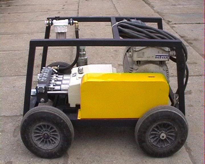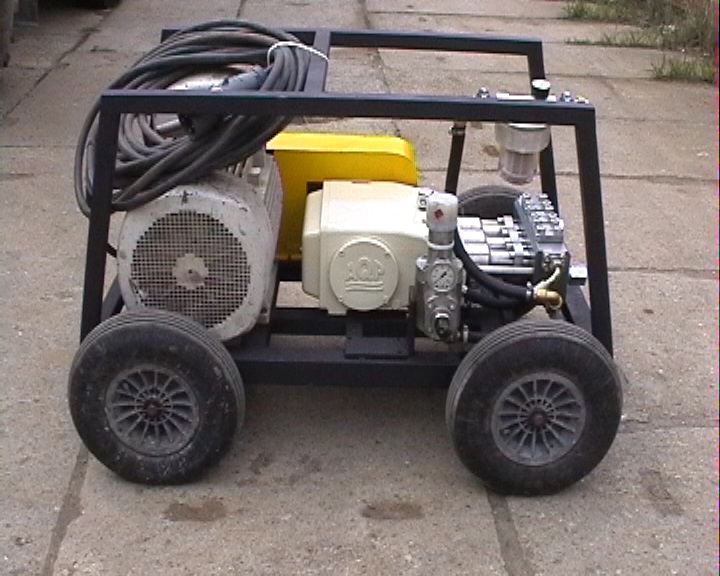 V průběhu servisu staršího vysokotlakého čističe FALCH jsme zjistili, že oprava a repase čerpadla SPECK by již nebyla pro našeho zákazníka z ekonomických důvodů zajímavá. Navrhli jsme proto zajímavé řešení – využít funkční elektromotor a kompletně přestavit vysokotlaký čistič s využitím našeho čerpadla AQH. Kompletně jsme využili výkon motoru a tím zvýšili čistící provozní tlak ze 400 bar na 550 bar. Tento šikovný mobilní čistící stroj je možné použít pro nejrůznější vysokotlaké čistící aplikace – čistění konstrukcí strojů, lakovacích boxů, nádrží, fasád, střech, gumy, asfaltu, starých barev apod.