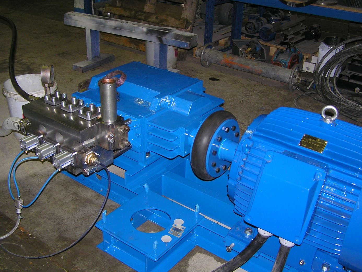 Vysokotlaké soustrojí s čerpadlem AQD a elektormotorem určené k ostříku okují v drátovně.