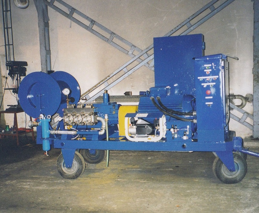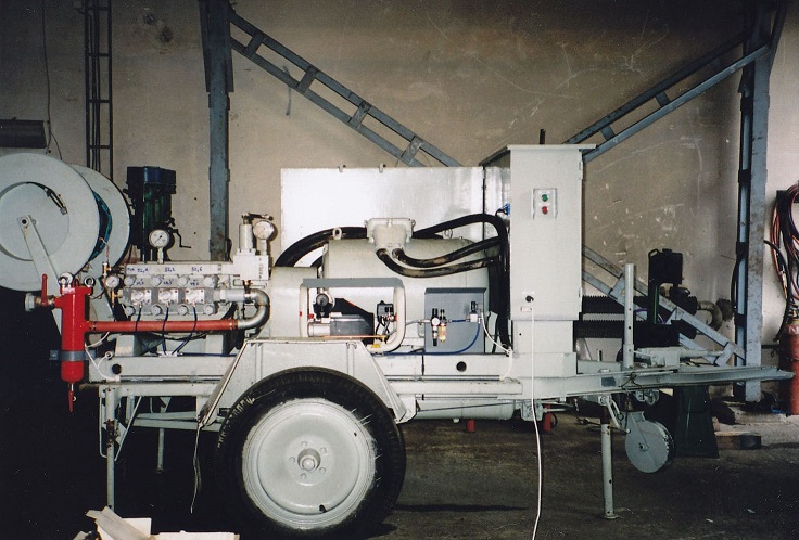 Rekonstrukce/Servis/ dvou mobilních vysokotlakých čistících agregátů, osazených čerpadly SIGMA a navíjecím bubnem pro vysokotlakou hadici. Mobilní vysokotlaké čističe jsou používány v chemickém průmyslu pro čištění filtrů a výměníků, kontejnerů od chemicky agresivních látek, čistění povrchů od barev a usazenin apod.