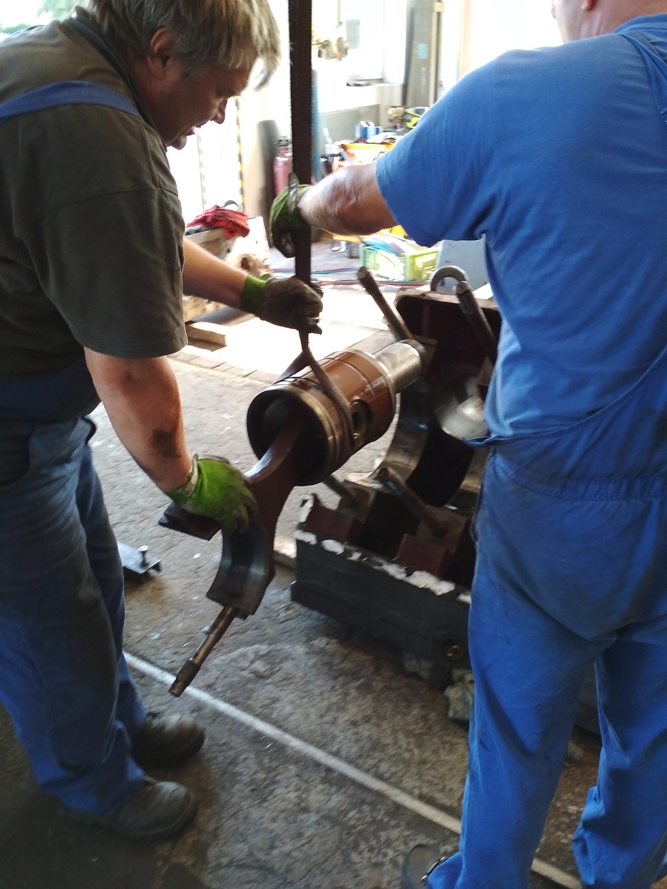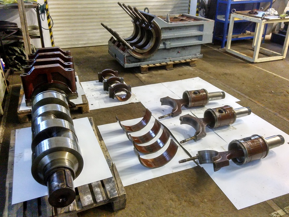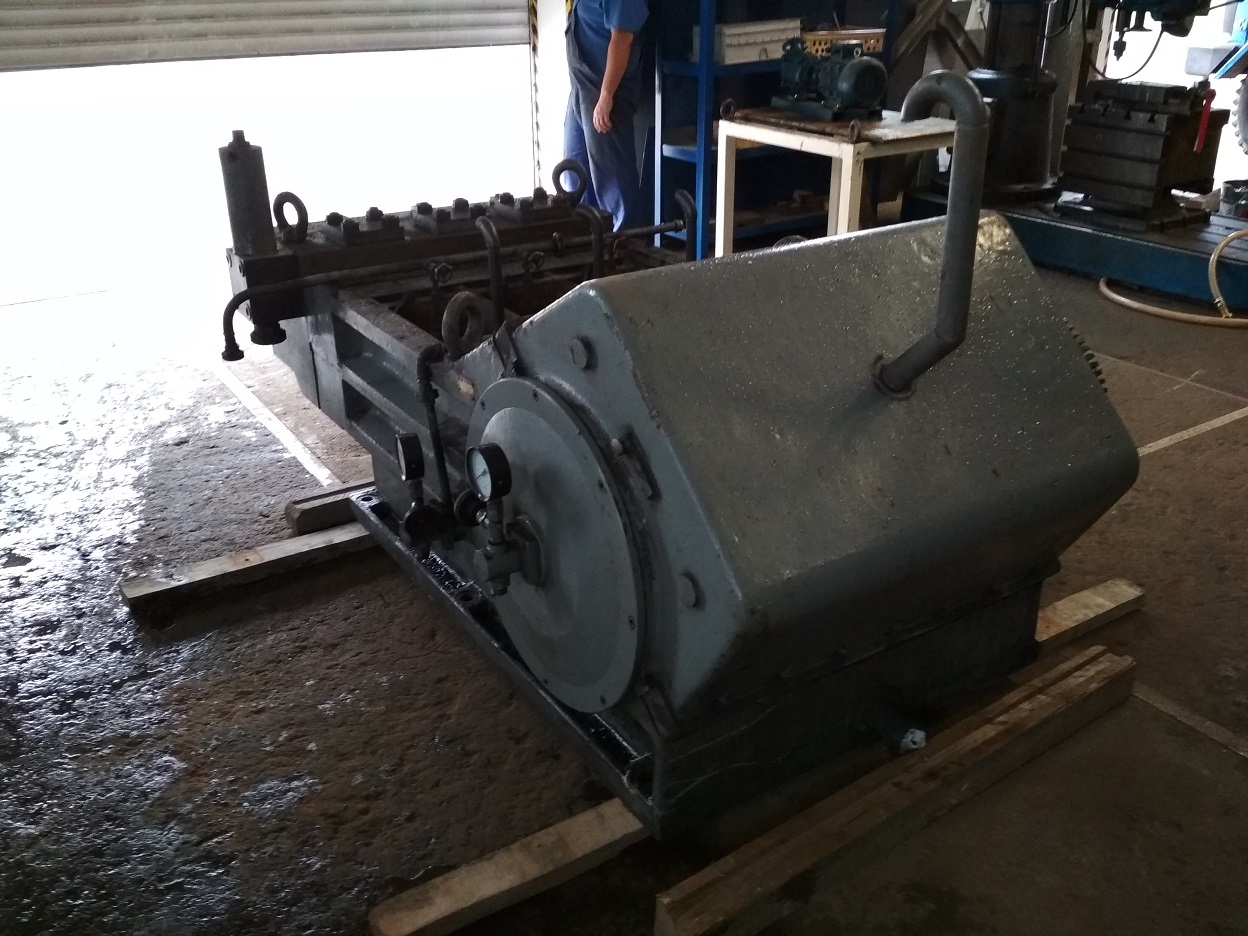 Kompletní oprava vysokotlakého plunžrového čerpadla SIGMA, s technickým označením PAH 3-140-85 s hmotností 5.400 kg, průtokem 650 l/min a tlakem 200 bar, které je používáno pro ostřik okují v železárně déle jak 30 let.
