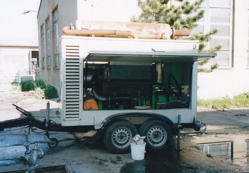 Mobilní vysokotlaký čistící stroj je používán v chemickém závodě pro čištění filtrů a výměníků od chemicky agresivních látek a usazenin.