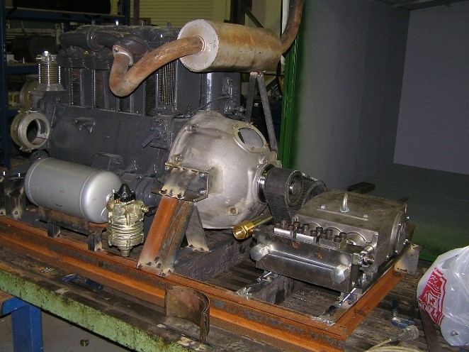 Využití staršího diesel motoru TATRA T924 a uzavřeného kontejneru na nákladním voze AVIA pro montáž vysokotlakého čističe.