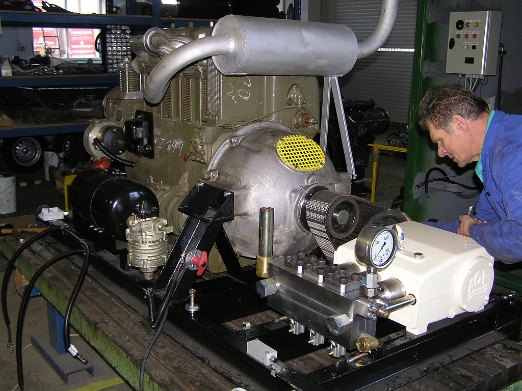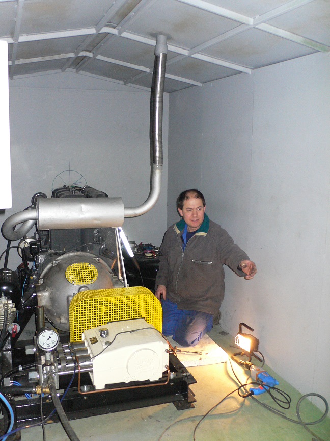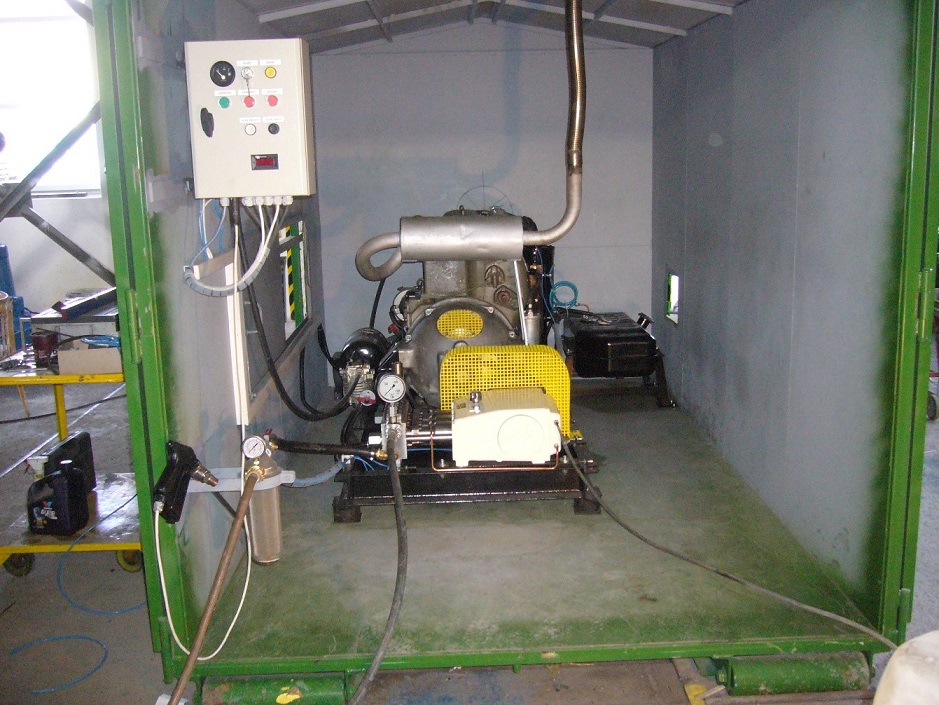 Vysokotlaké čerpadlo AQH 50 spolu s motorem, extérním podávacím čerpadlem PEDROLLO TOP MULTI a kompresorem bylo namontováno na společný rám, který byl následně zabudován do kontejneru, upraveného pro zjednodušení práce obsluhy. Dále byl nutné připojit filtrační, bezpečnostní a pojistný systém, nádrž na naftu a na závěr vše propojit s řídícím systémem a elektroinstalací.