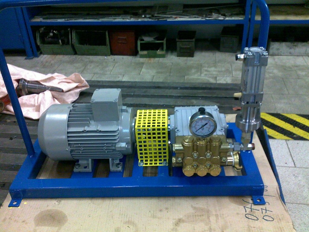 Vysokotlaké zařízení osazené čerpadlem SPECK pro čerpání oleje a vybavené elektromagnetickým uzavíracím ventilem a pneumatickým regulačním ventilem (resp. přepouštěcím ventilem). Automatické dávkování natlakovaného oleje je používáno pro mazání kalibrů na válcovacích tratích.