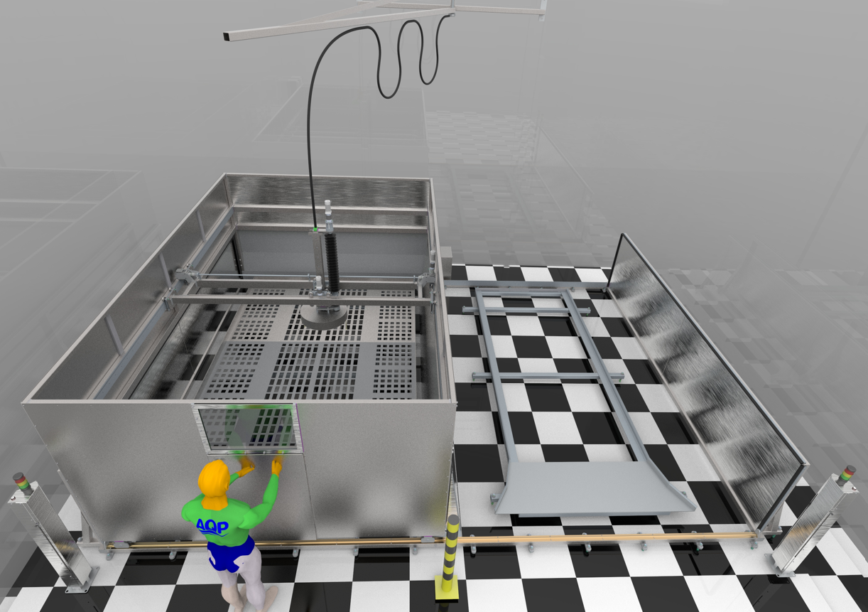 Špeciálne navrhnuté kapotované vysokotlakové automatizované zariadenie AQVA určené na dlhodobú prevádzku. Zariadenie je skonštruované podľa rozmerov už existujúcich priestorov určených na vysokotlakové tryskanie (uzavreté vetrané miestnosti).